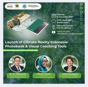 Celebrating The Climate Reality Project Indonesia’s 16th anniversary, we are pleased to announce the launch of the Climate Reality Indonesia Bilingual Photobook & Visual Coaching Tools at COP30 UNFCCC in Belém, Brazil.